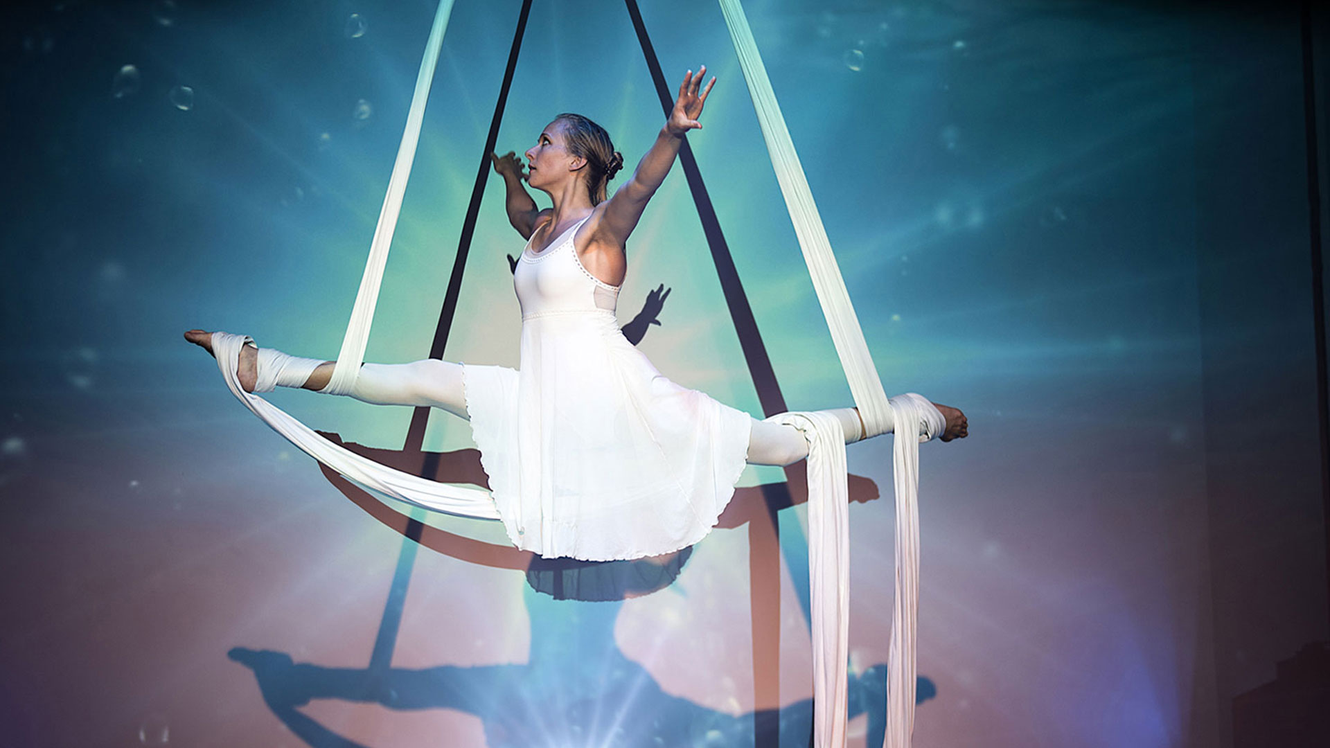 Akrobatik & Arial Silk Performance mit Projection Mapping.